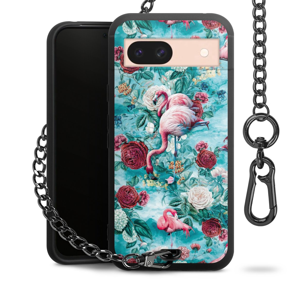 Die mattschwarze Silikon-Handyhülle besteht aus robustem TPU (thermoplastisches Polyurethan). Sie ist flexibel und schützt Dein Smartphone vor Stößen und Kratzern. Die Kette sowie der Karabinerhaken sind aus Metall in Gunmetal-Optik gefertigt. Für dieses Produkt kommen ausschließlich TÜV-geprüfte Materialien zum Einsatz.