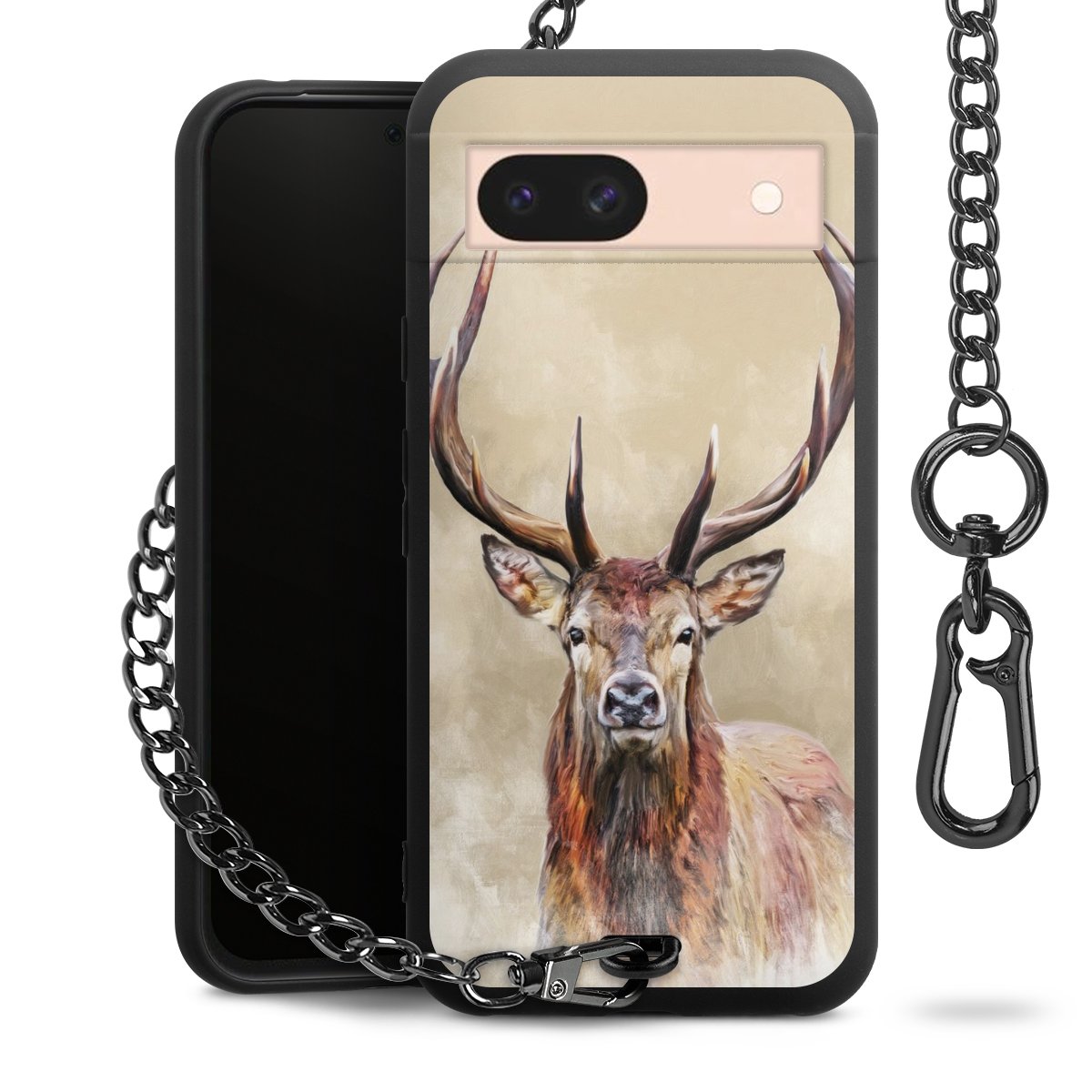 • Mattschwarze Handyhülle mit Metallkette