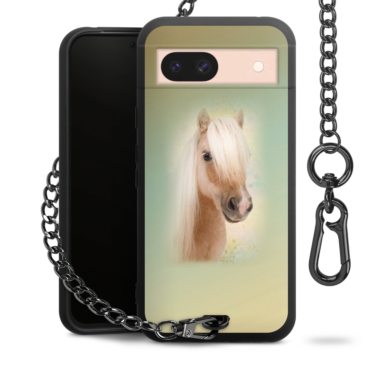 Die mattschwarze Silikon-Handyhülle besteht aus robustem TPU (thermoplastisches Polyurethan). Sie ist flexibel und schützt Dein Smartphone vor Stößen und Kratzern. Die Kette sowie der Karabinerhaken sind aus Metall in Gunmetal-Optik gefertigt. Für dieses Produkt kommen ausschließlich TÜV-geprüfte Materialien zum Einsatz.