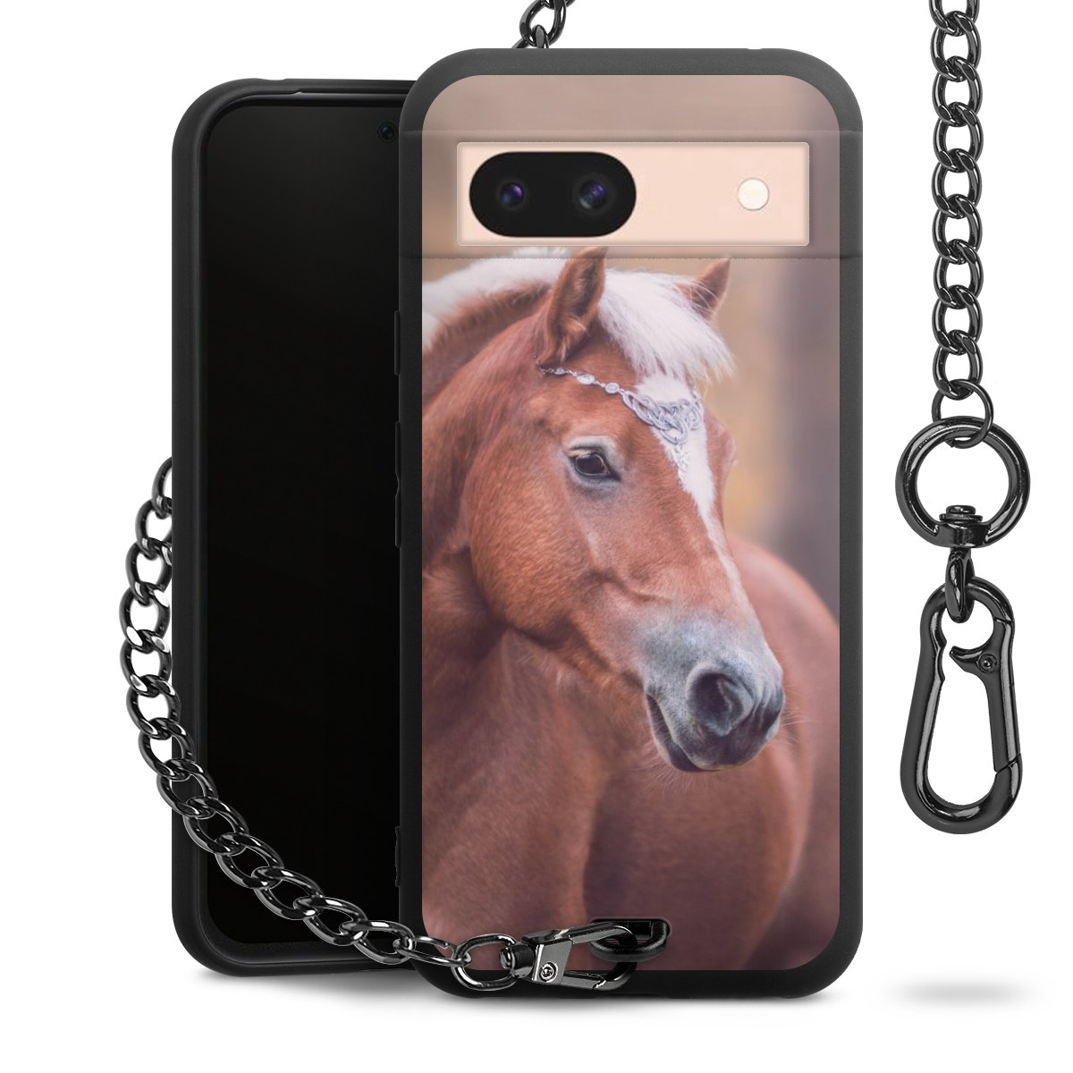 • Mattschwarze Handyhülle mit Metallkette