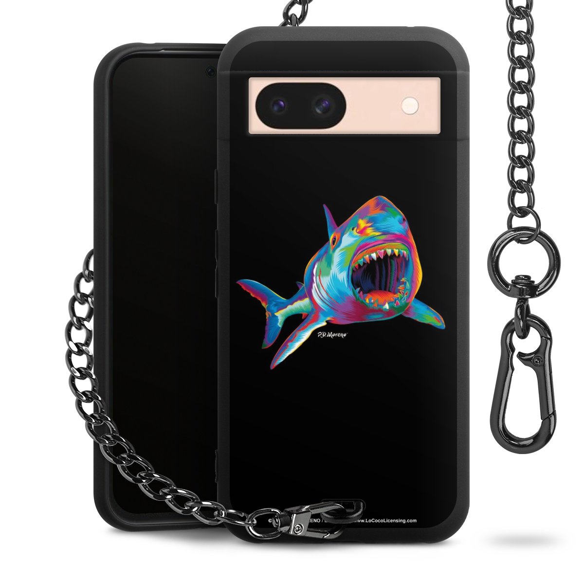 Die mattschwarze Silikon-Handyhülle besteht aus robustem TPU (thermoplastisches Polyurethan). Sie ist flexibel und schützt Dein Smartphone vor Stößen und Kratzern. Die Kette sowie der Karabinerhaken sind aus Metall in Gunmetal-Optik gefertigt. Für dieses Produkt kommen ausschließlich TÜV-geprüfte Materialien zum Einsatz.
