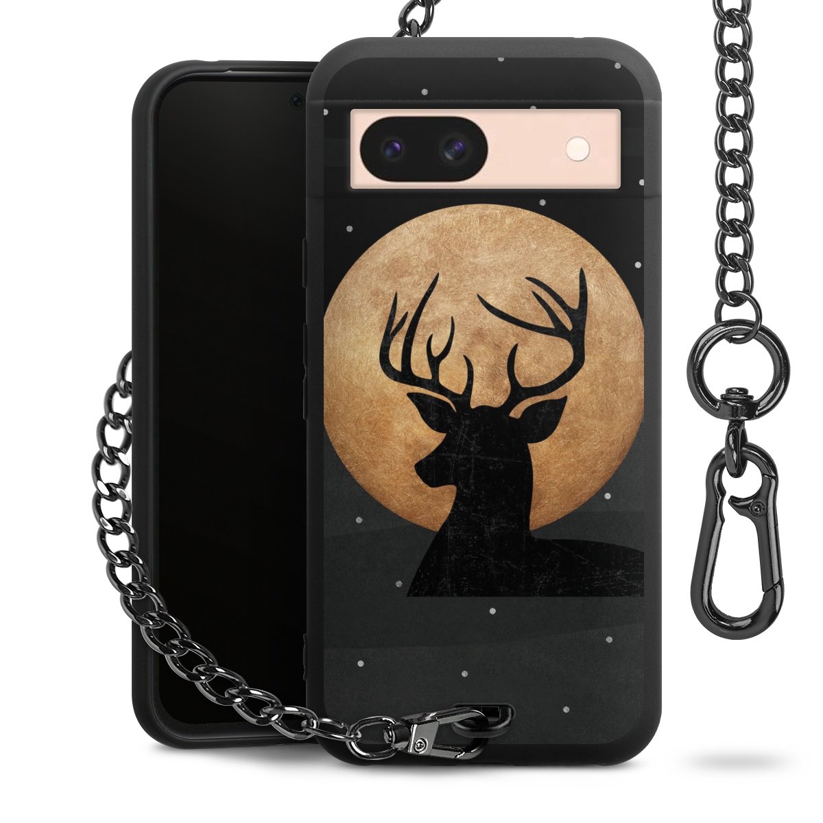 • Mattschwarze Handyhülle mit Metallkette