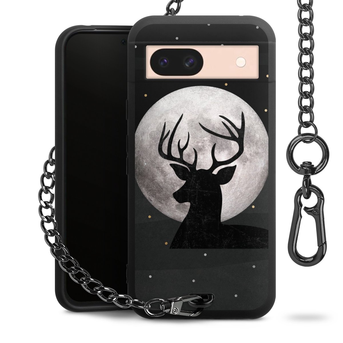 • Mattschwarze Handyhülle mit Metallkette