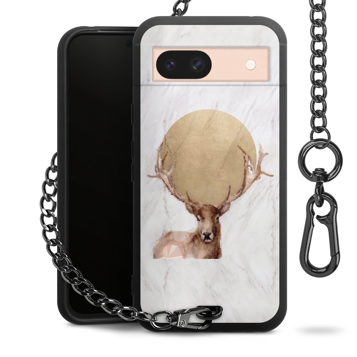 • Mattschwarze Handyhülle mit Metallkette