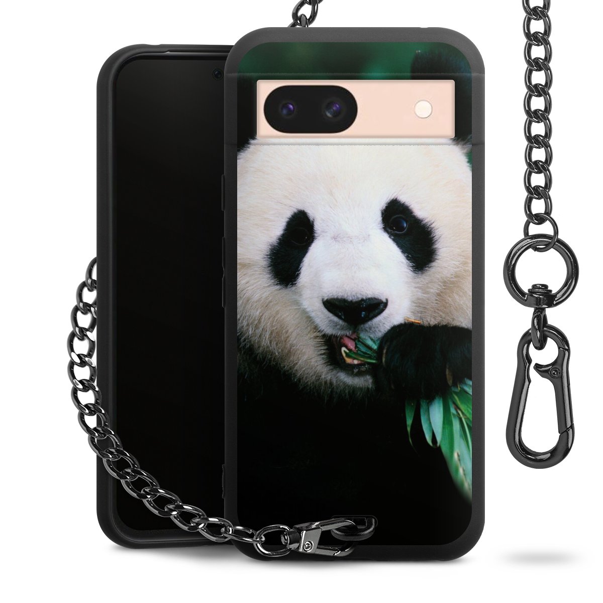 - Mattschwarze Handyhülle mit Metallkette