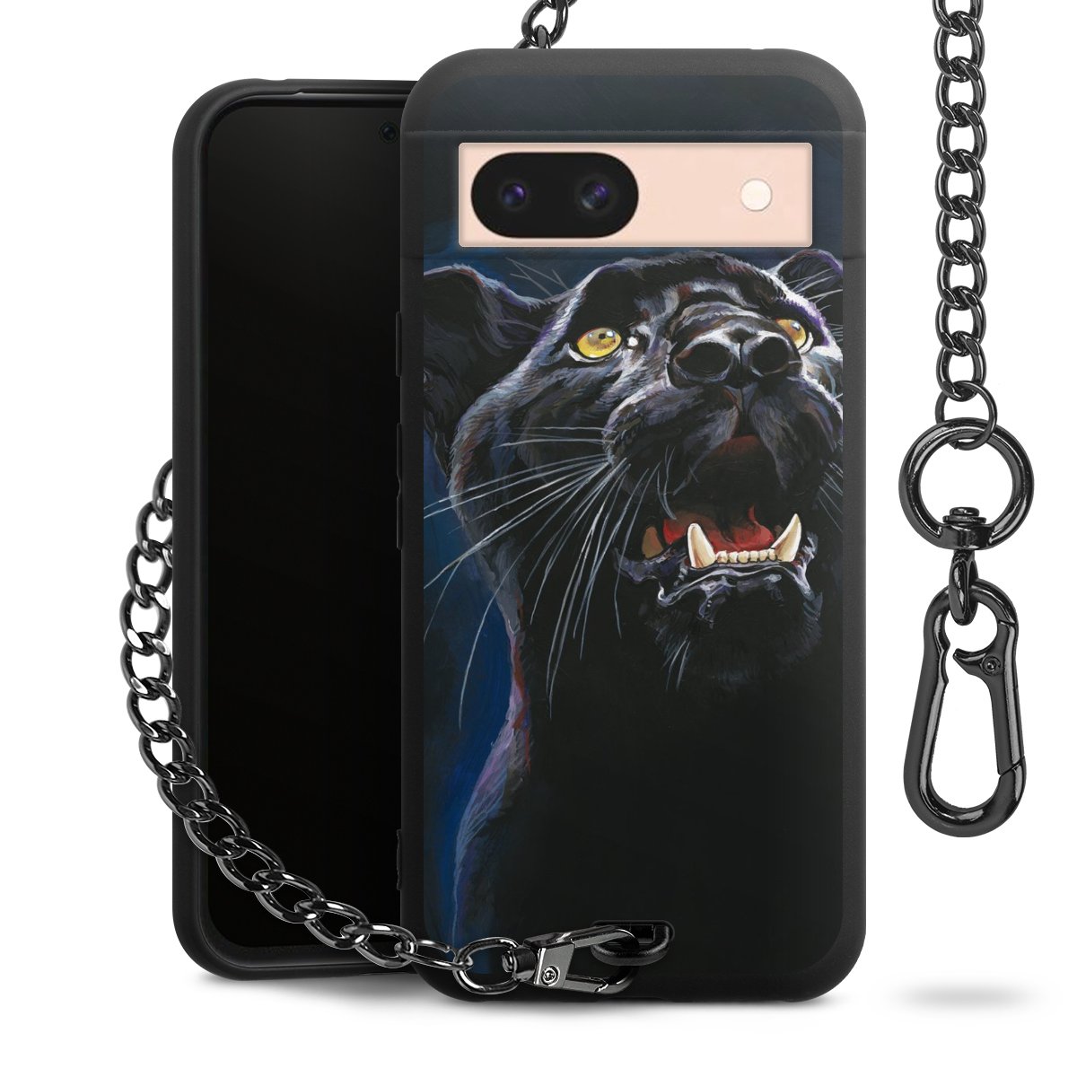 Die mattschwarze Silikon-Handyhülle besteht aus robustem TPU (thermoplastisches Polyurethan). Sie ist flexibel und schützt Dein Smartphone vor Stößen und Kratzern. Die Kette sowie der Karabinerhaken sind aus Metall in Gunmetal-Optik gefertigt. Für dieses Produkt kommen ausschließlich TÜV-geprüfte Materialien zum Einsatz.