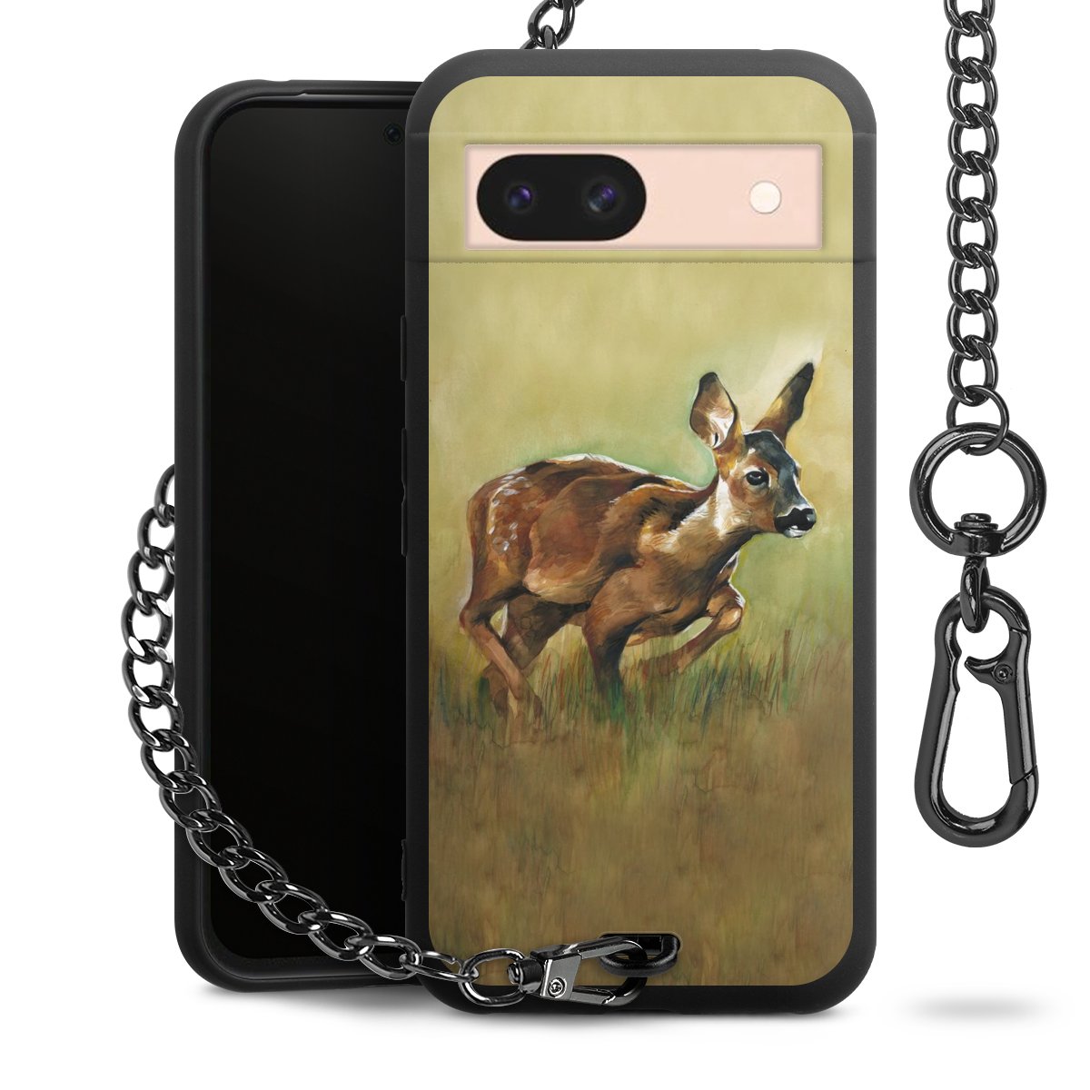 Die mattschwarze Silikon-Handyhülle besteht aus robustem TPU (thermoplastisches Polyurethan). Sie ist flexibel und schützt Dein Smartphone vor Stößen und Kratzern. Die Kette sowie der Karabinerhaken sind aus Metall in Gunmetal-Optik gefertigt. Für dieses Produkt kommen ausschließlich TÜV-geprüfte Materialien zum Einsatz.