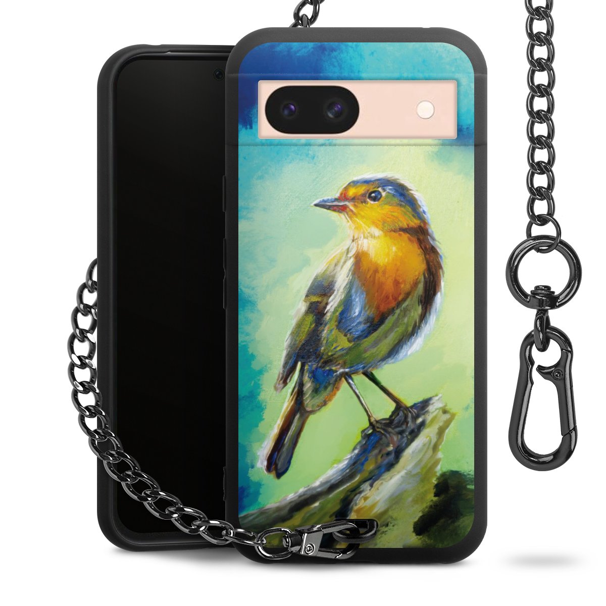• Mattschwarze Handyhülle mit Metallkette