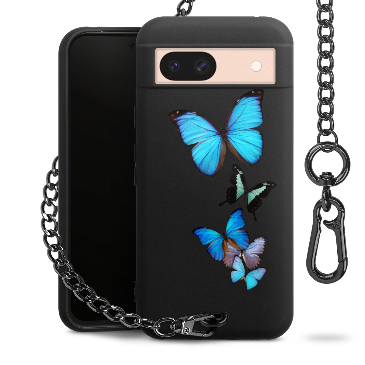 • Mattschwarze Handyhülle mit Metallkette