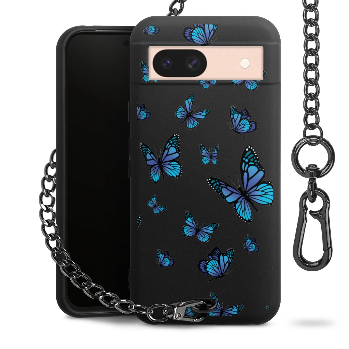 - Mattschwarze Handyhülle mit Metallkette