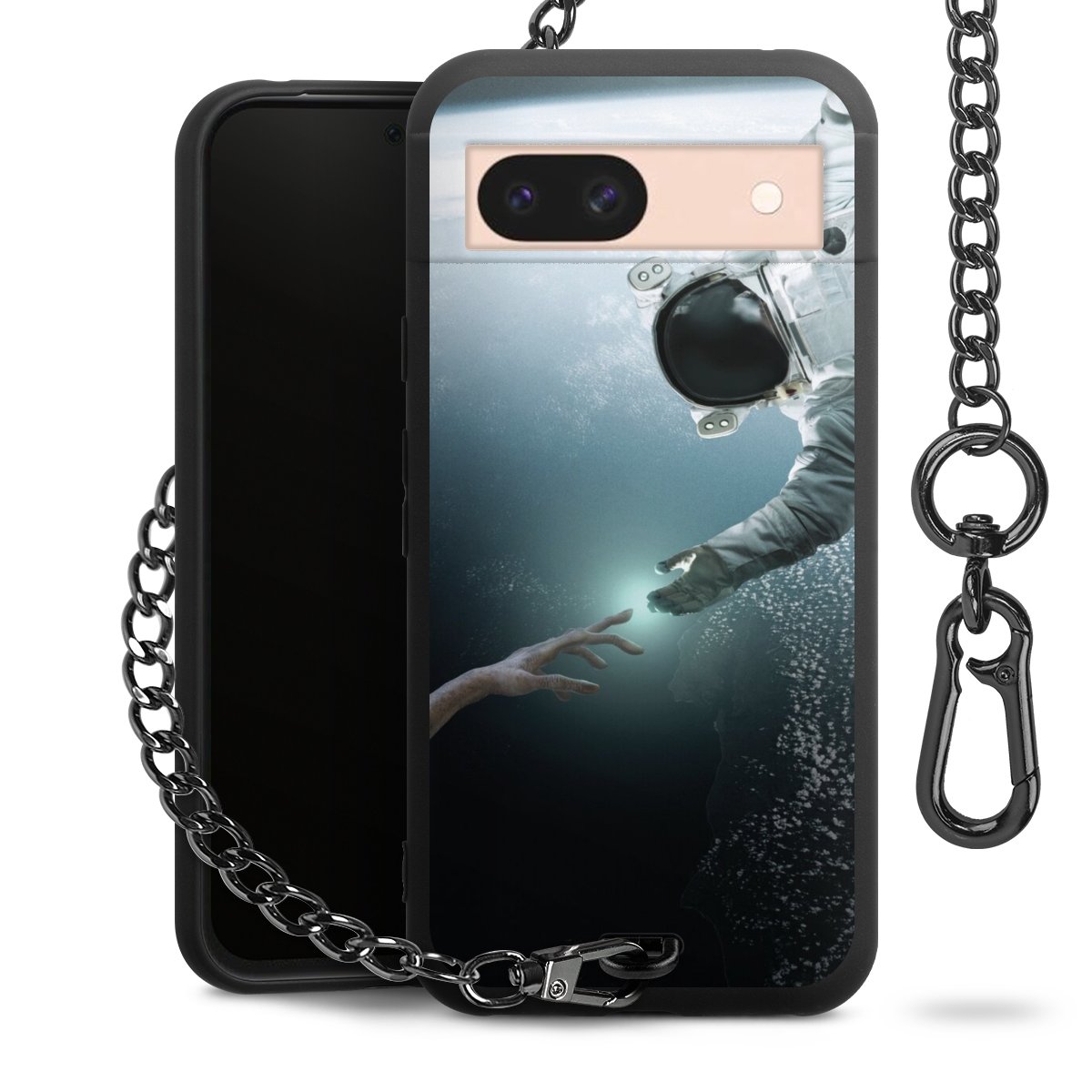 - Mattschwarze Handyhülle mit Metallkette