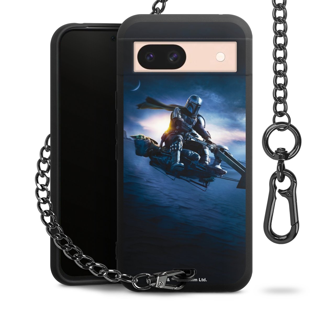 Die mattschwarze Silikon-Handyhülle besteht aus robustem TPU (thermoplastisches Polyurethan). Sie ist flexibel und schützt Dein Smartphone vor Stößen und Kratzern. Die Kette sowie der Karabinerhaken sind aus Metall in Gunmetal-Optik gefertigt. Für dieses Produkt kommen ausschließlich TÜV-geprüfte Materialien zum Einsatz.