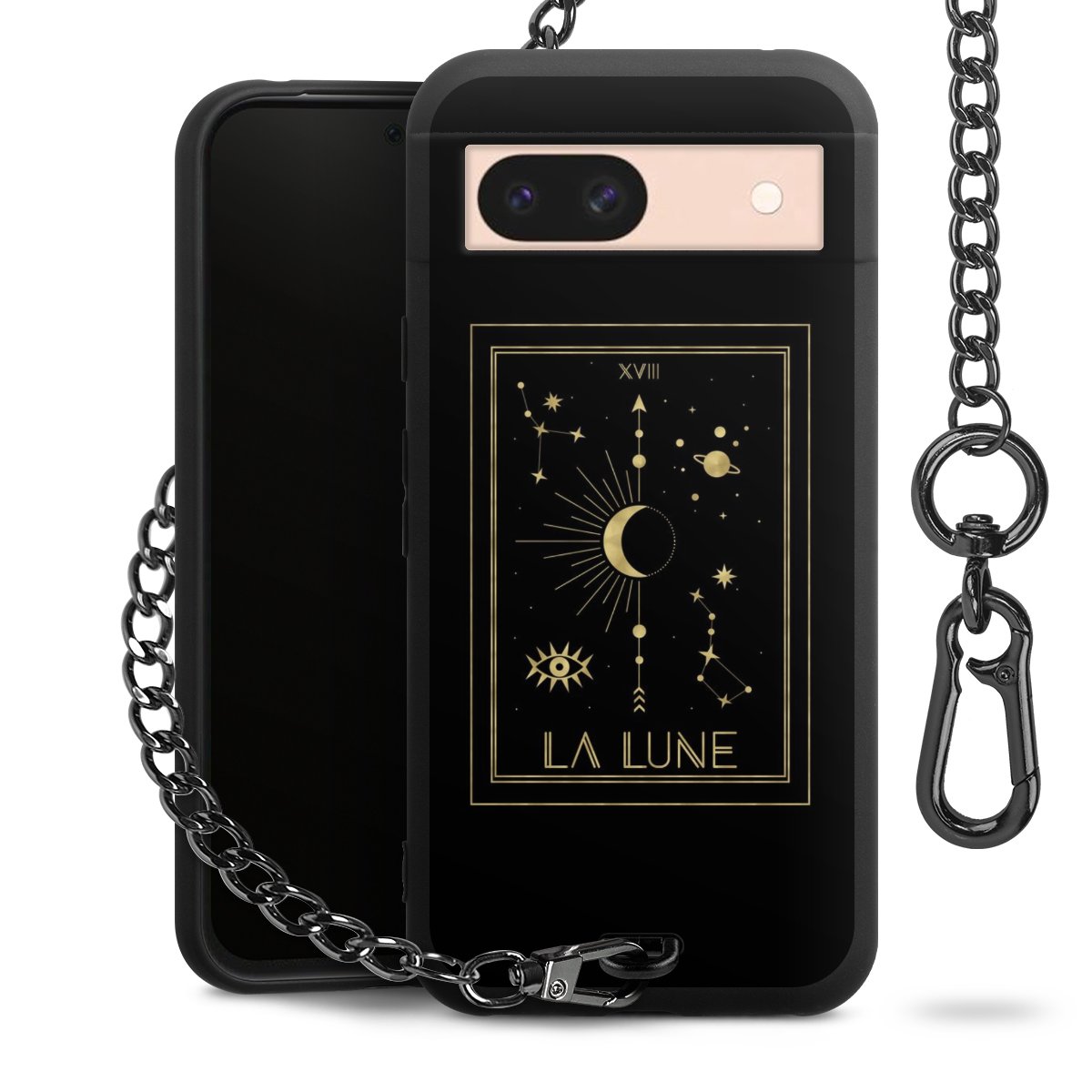 Die mattschwarze Silikon-Handyhülle besteht aus robustem TPU (thermoplastisches Polyurethan). Sie ist flexibel und schützt Dein Smartphone vor Stößen und Kratzern. Die Kette sowie der Karabinerhaken sind aus Metall in Gunmetal-Optik gefertigt. Für dieses Produkt kommen ausschließlich TÜV-geprüfte Materialien zum Einsatz.