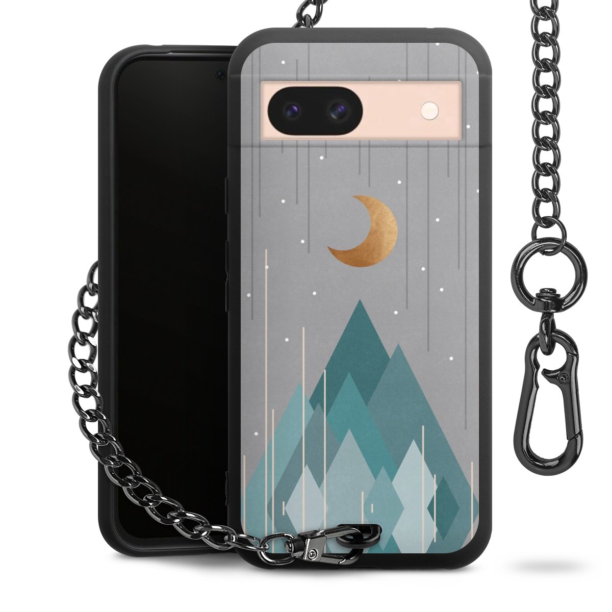 • Mattschwarze Handyhülle mit Metallkette