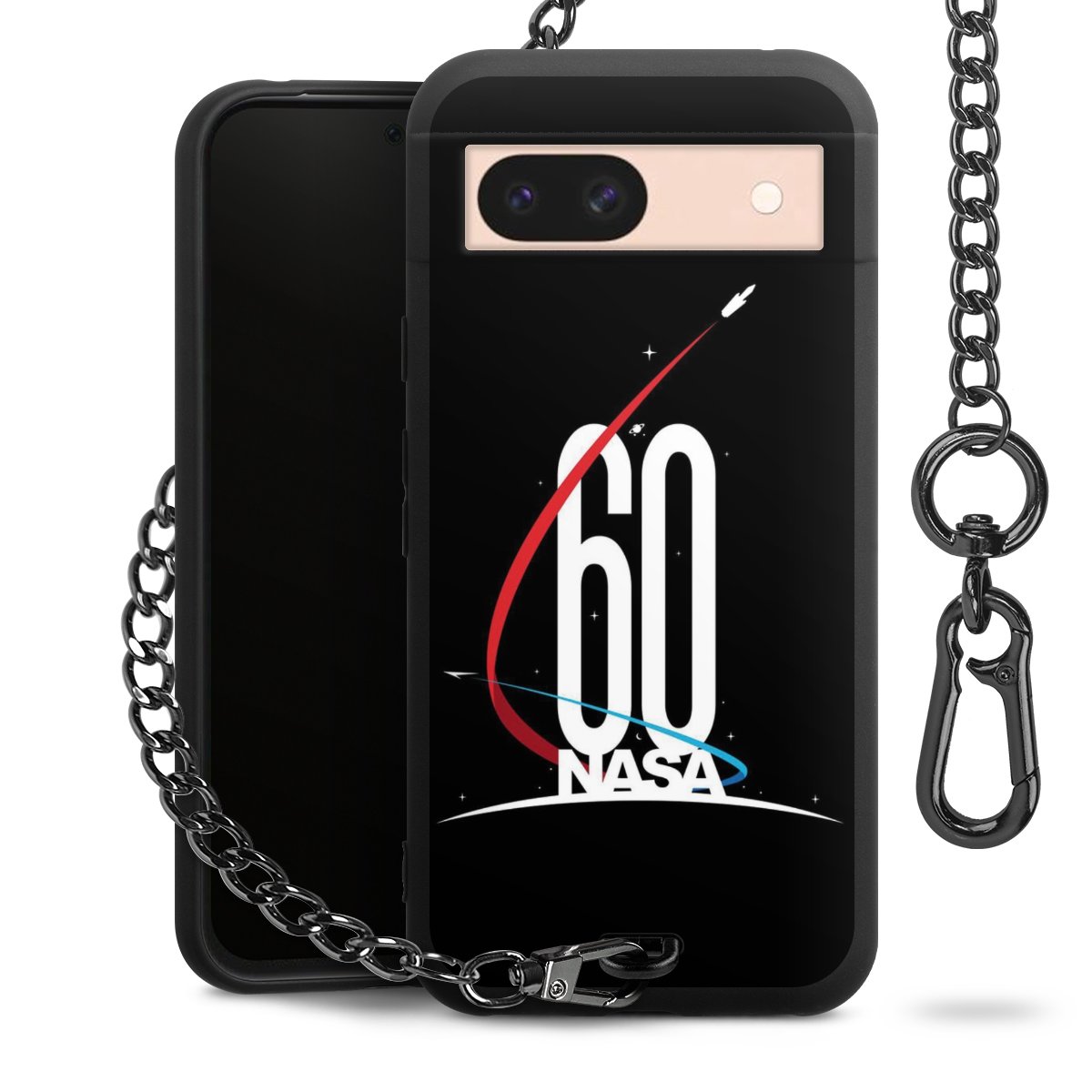 - Mattschwarze Handyhülle mit Metallkette