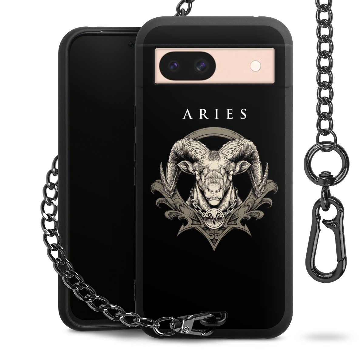 Die mattschwarze Silikon-Handyhülle besteht aus robustem TPU (thermoplastisches Polyurethan). Sie ist flexibel und schützt Dein Smartphone vor Stößen und Kratzern. Die Kette sowie der Karabinerhaken sind aus Metall in Gunmetal-Optik gefertigt. Für dieses Produkt kommen ausschließlich TÜV-geprüfte Materialien zum Einsatz.