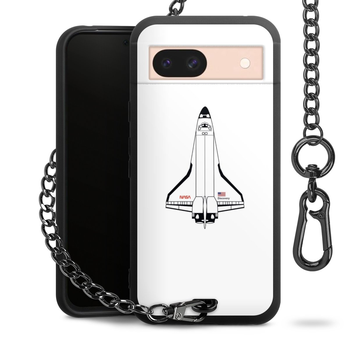 Die mattschwarze Silikon-Handyhülle besteht aus robustem TPU (thermoplastisches Polyurethan). Sie ist flexibel und schützt Dein Smartphone vor Stößen und Kratzern. Die Kette sowie der Karabinerhaken sind aus Metall in Gunmetal-Optik gefertigt. Für dieses Produkt kommen ausschließlich TÜV-geprüfte Materialien zum Einsatz.
