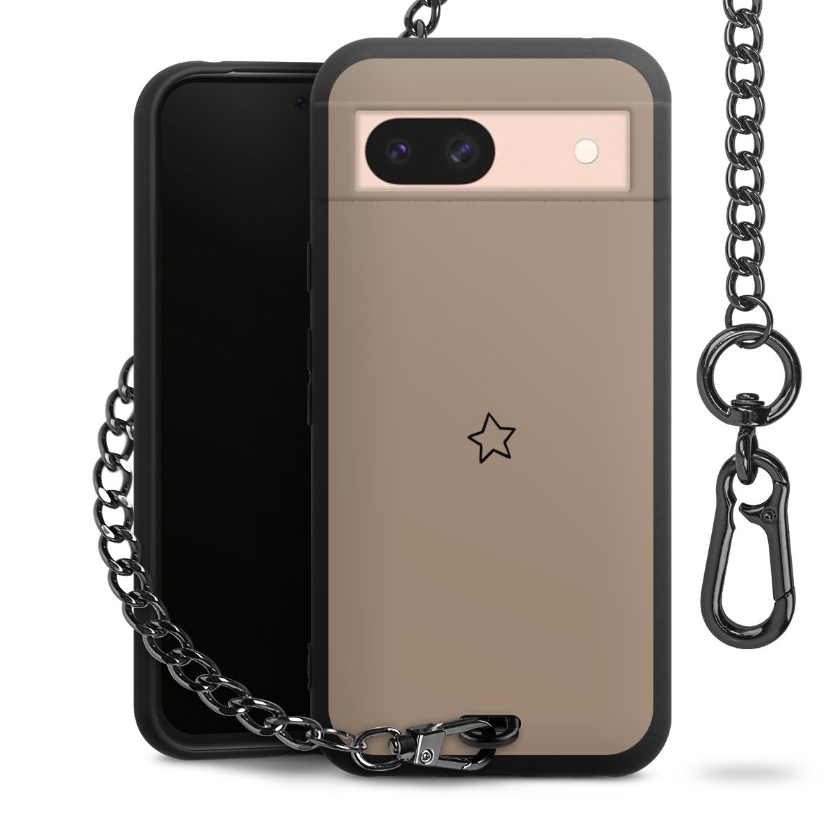 - Mattschwarze Handyhülle mit Metallkette