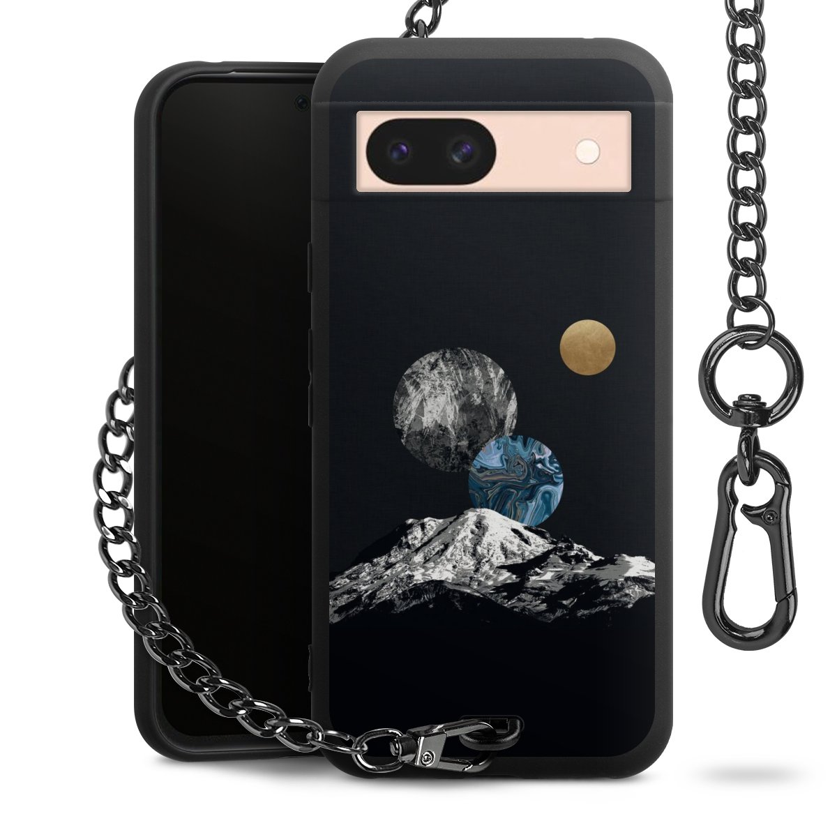 • Mattschwarze Handyhülle mit Metallkette