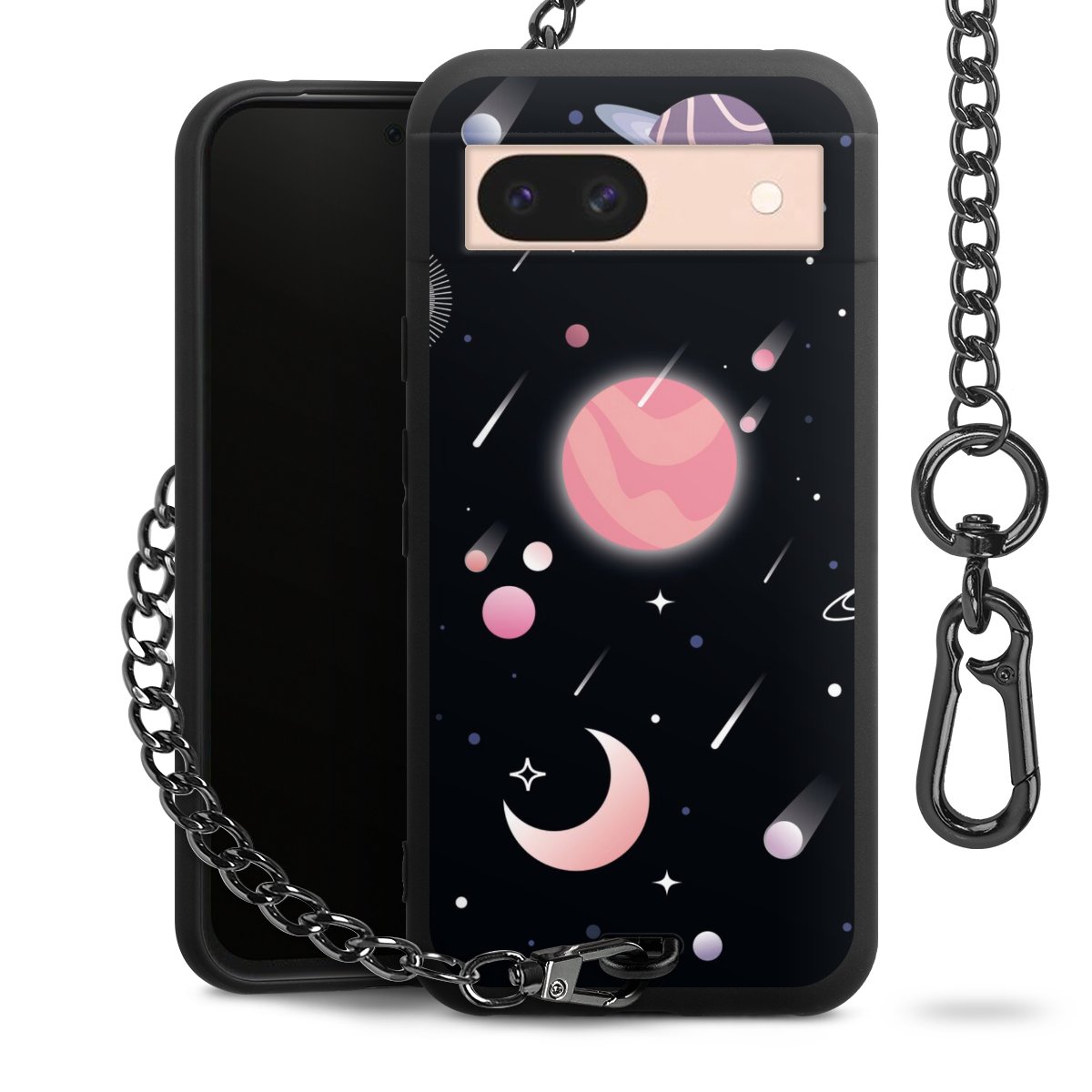 • Mattschwarze Handyhülle mit Metallkette