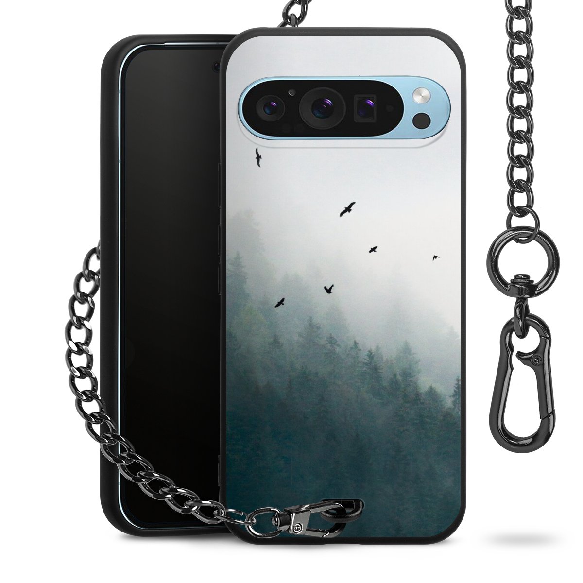 • Mattschwarze Handyhülle mit Metallkette