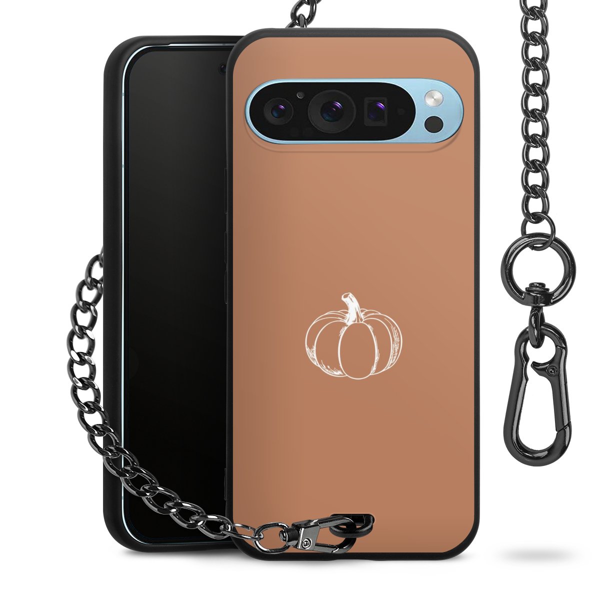 - Mattschwarze Handyhülle mit Metallkette