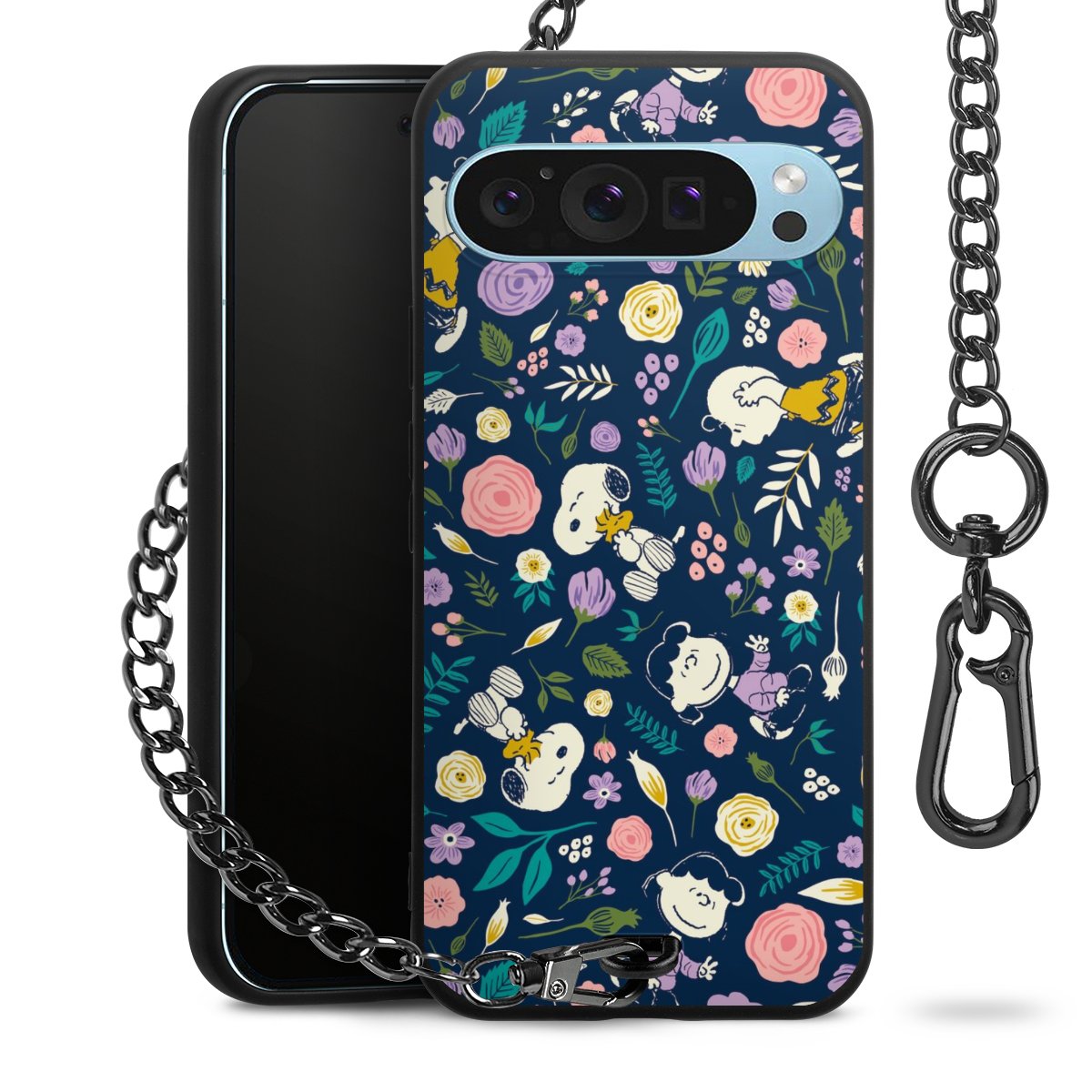 • Mattschwarze Handyhülle mit Metallkette