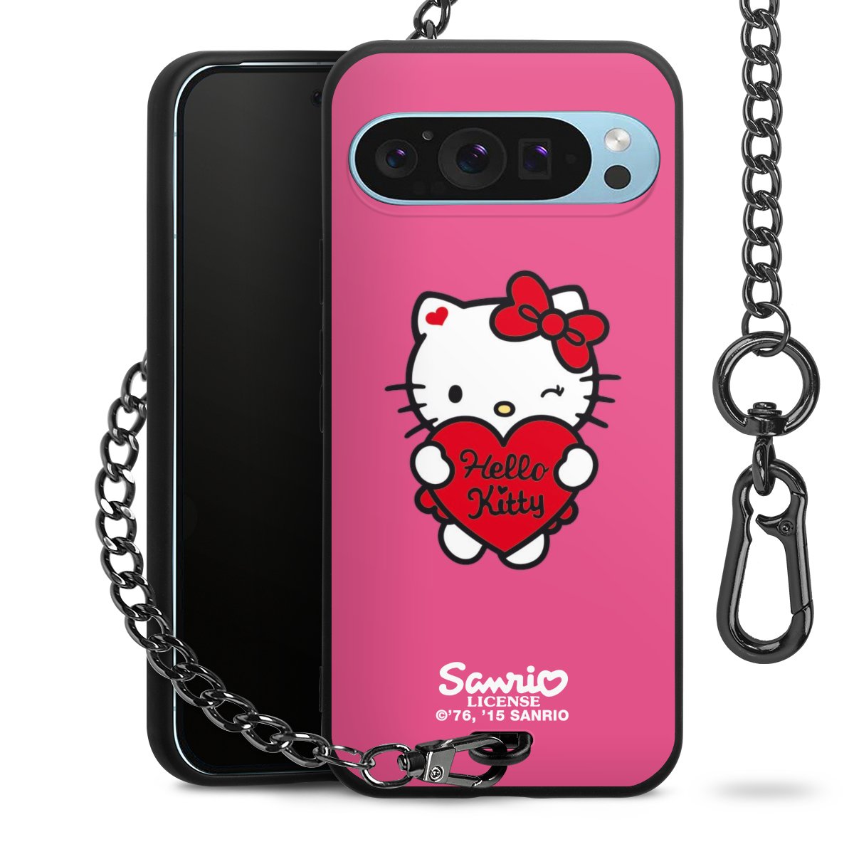 Die mattschwarze Silikon-Handyhülle besteht aus robustem TPU (thermoplastisches Polyurethan). Sie ist flexibel und schützt Dein Smartphone vor Stößen und Kratzern. Die Kette sowie der Karabinerhaken sind aus Metall in Gunmetal-Optik gefertigt. Für dieses Produkt kommen ausschließlich TÜV-geprüfte Materialien zum Einsatz.