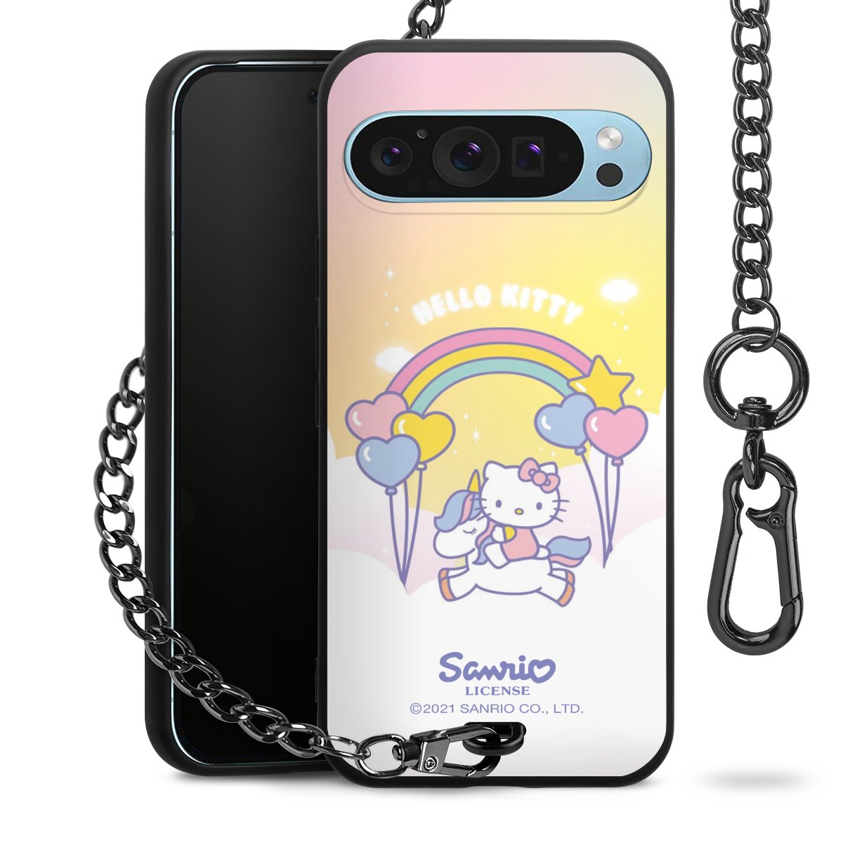 Die mattschwarze Silikon-Handyhülle besteht aus robustem TPU (thermoplastisches Polyurethan). Sie ist flexibel und schützt Dein Smartphone vor Stößen und Kratzern. Die Kette sowie der Karabinerhaken sind aus Metall in Gunmetal-Optik gefertigt. Für dieses Produkt kommen ausschließlich TÜV-geprüfte Materialien zum Einsatz.