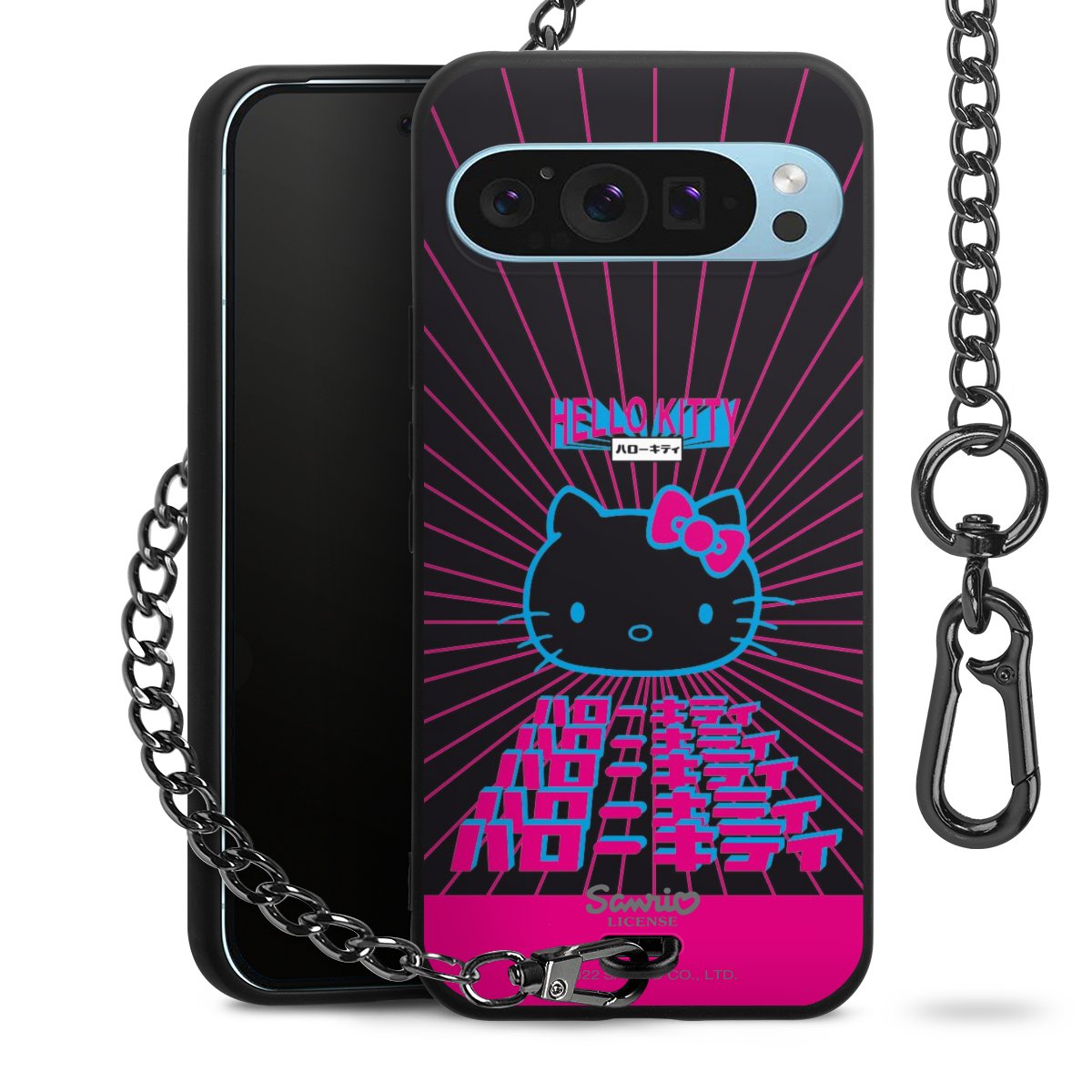 Die mattschwarze Silikon-Handyhülle besteht aus robustem TPU (thermoplastisches Polyurethan). Sie ist flexibel und schützt Dein Smartphone vor Stößen und Kratzern. Die Kette sowie der Karabinerhaken sind aus Metall in Gunmetal-Optik gefertigt. Für dieses Produkt kommen ausschließlich TÜV-geprüfte Materialien zum Einsatz.