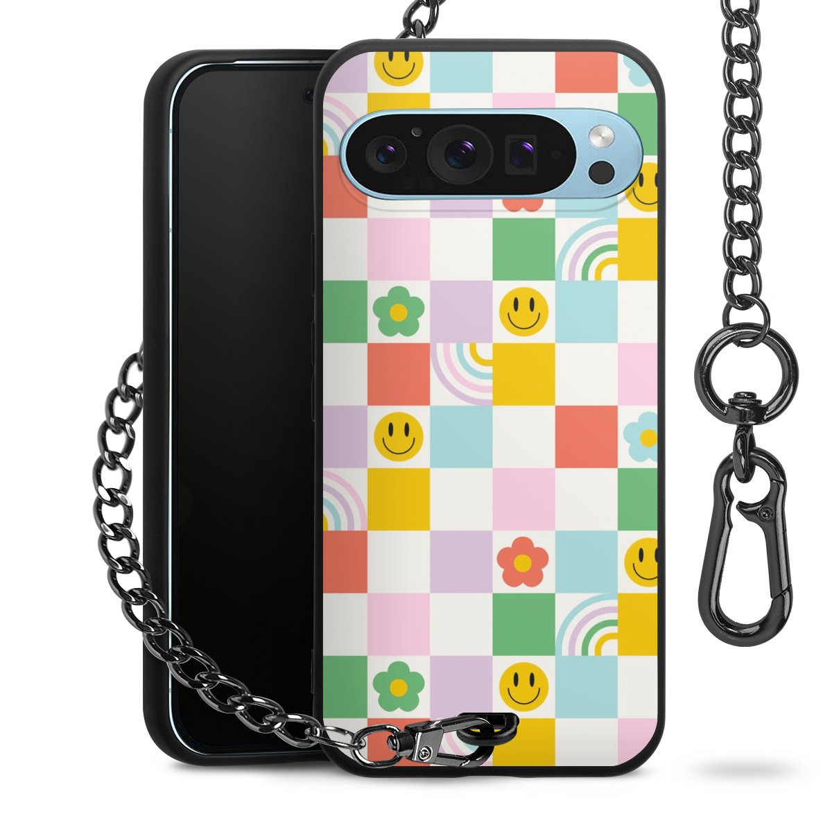 Die mattschwarze Silikon-Handyhülle besteht aus robustem TPU (thermoplastisches Polyurethan). Sie ist flexibel und schützt Dein Smartphone vor Stößen und Kratzern. Die Kette sowie der Karabinerhaken sind aus Metall in Gunmetal-Optik gefertigt. Für dieses Produkt kommen ausschließlich TÜV-geprüfte Materialien zum Einsatz.