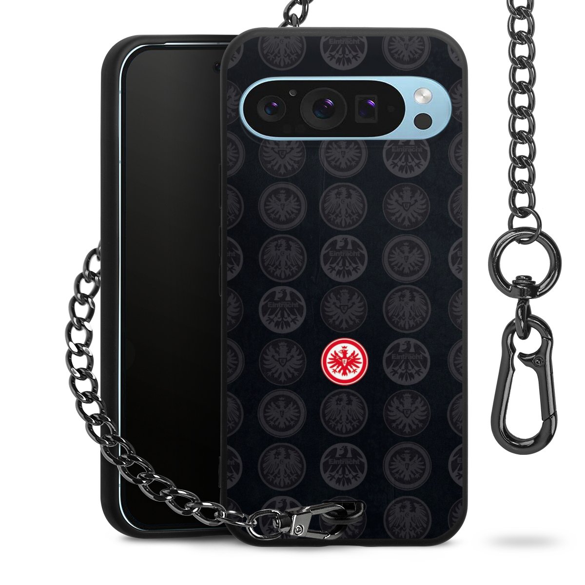 • Mattschwarze Handyhülle mit Metallkette