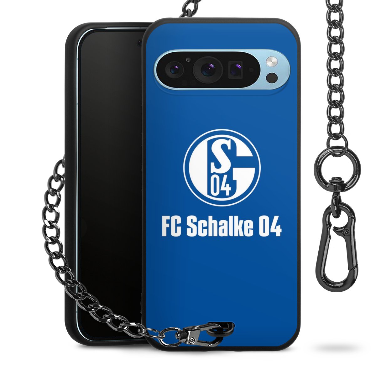• Mattschwarze Handyhülle mit Metallkette