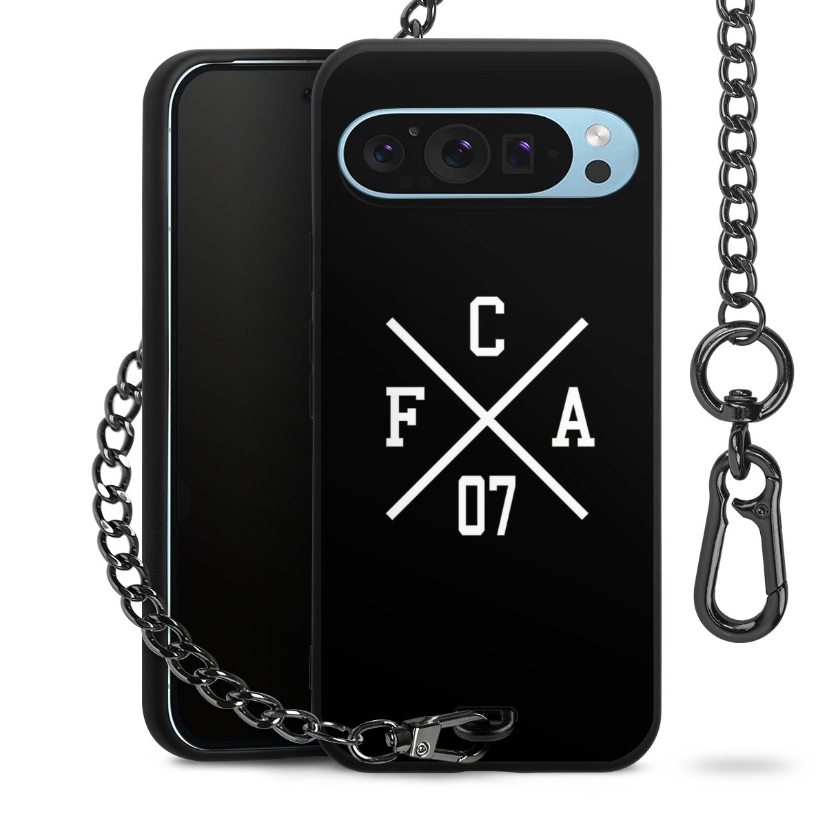• Mattschwarze Handyhülle mit Metallkette