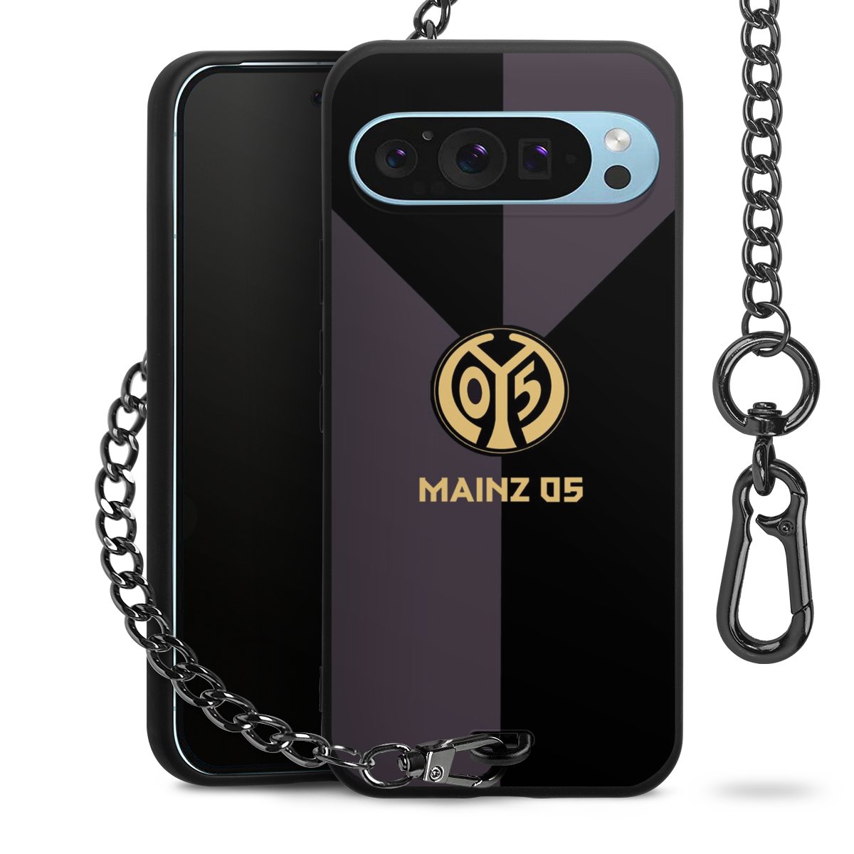 Die mattschwarze Silikon-Handyhülle besteht aus robustem TPU (thermoplastisches Polyurethan). Sie ist flexibel und schützt Dein Smartphone vor Stößen und Kratzern. Die Kette sowie der Karabinerhaken sind aus Metall in Gunmetal-Optik gefertigt. Für dieses Produkt kommen ausschließlich TÜV-geprüfte Materialien zum Einsatz.