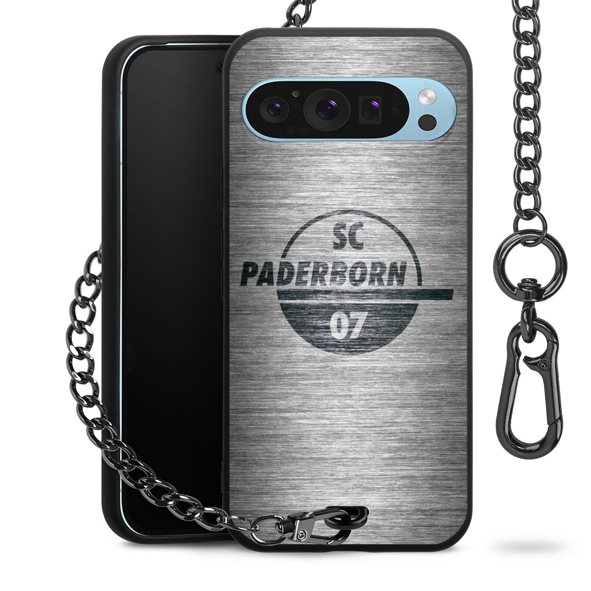 • Mattschwarze Handyhülle mit Metallkette