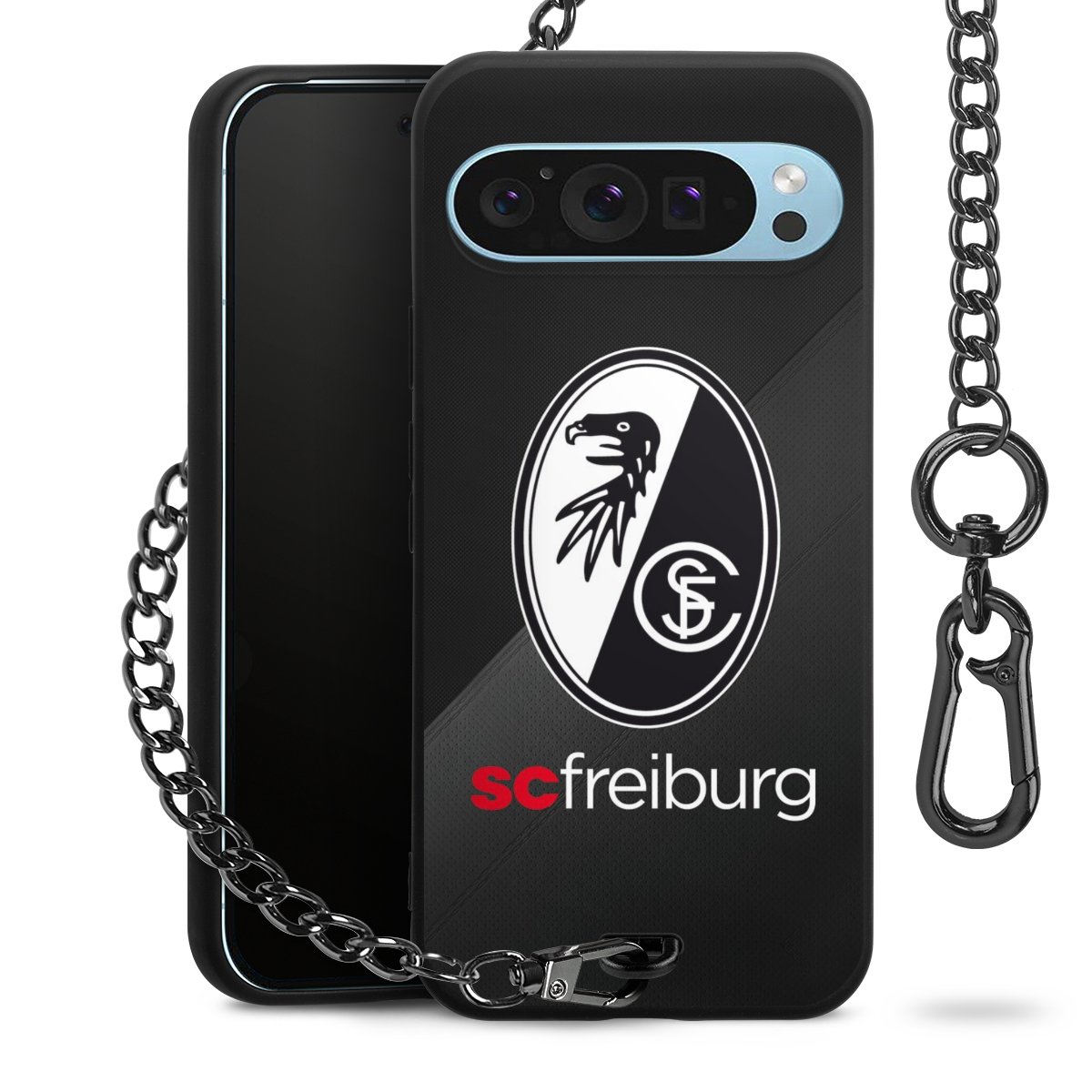 • Mattschwarze Handyhülle mit Metallkette