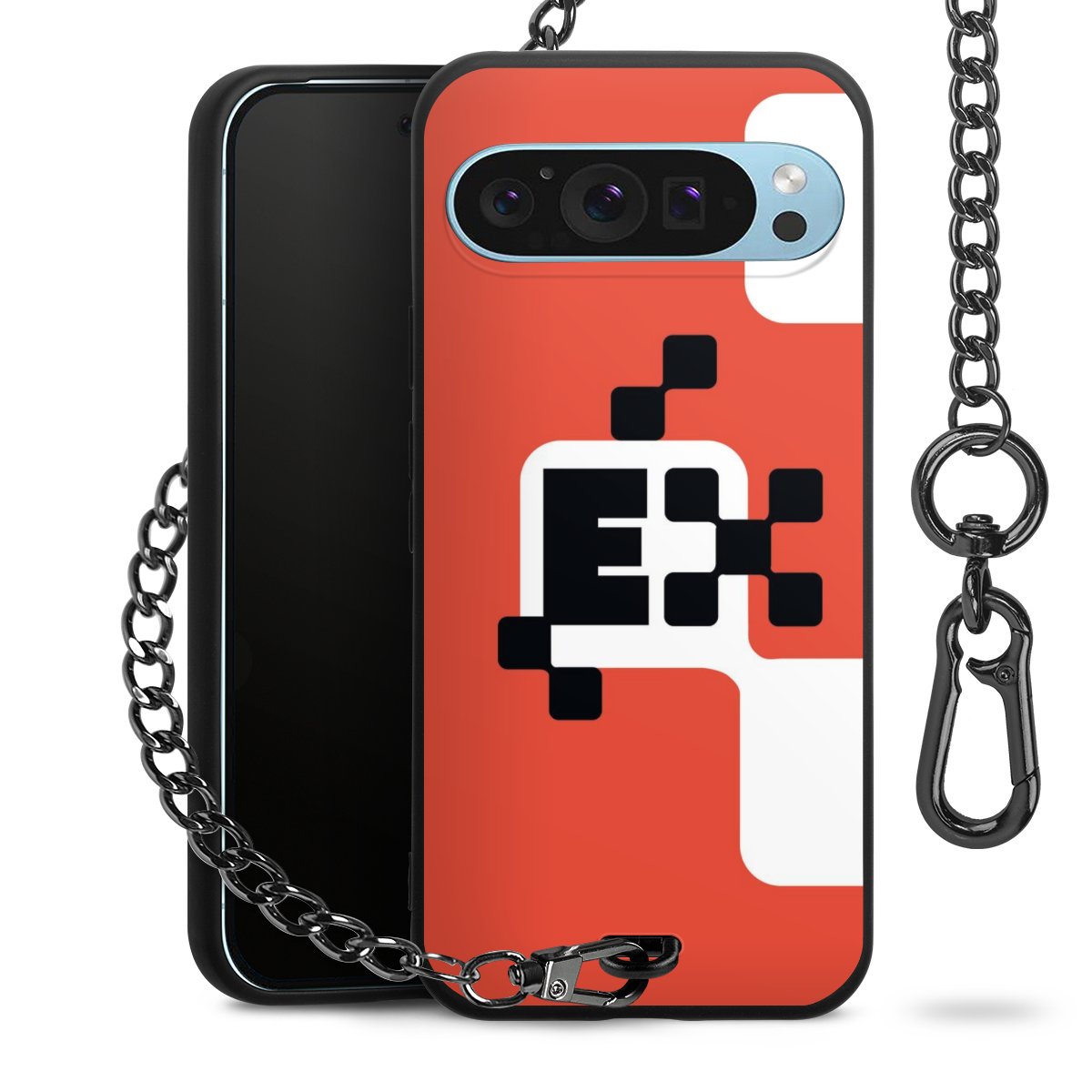 - Mattschwarze Handyhülle mit Metallkette