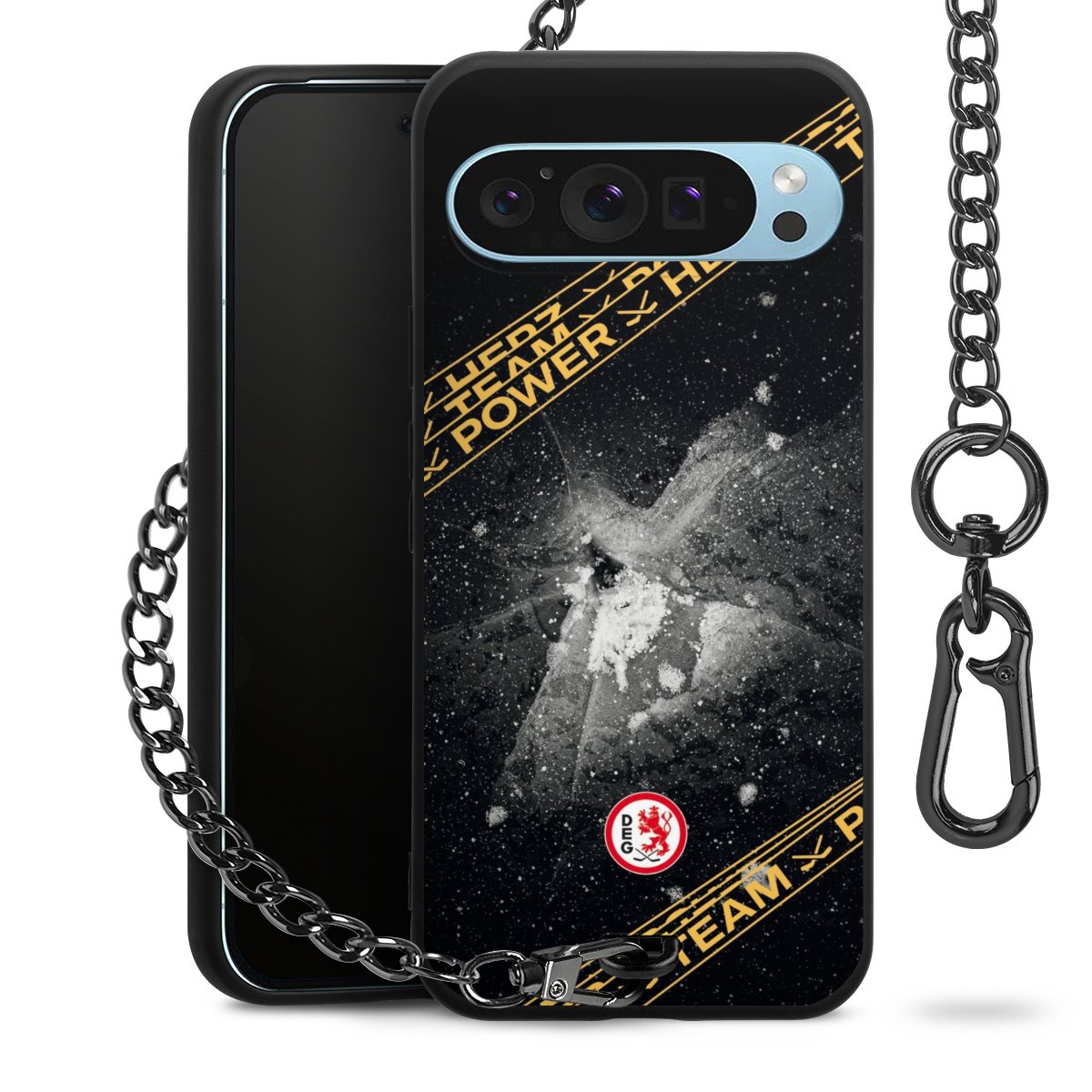 - Mattschwarze Handyhülle mit Metallkette