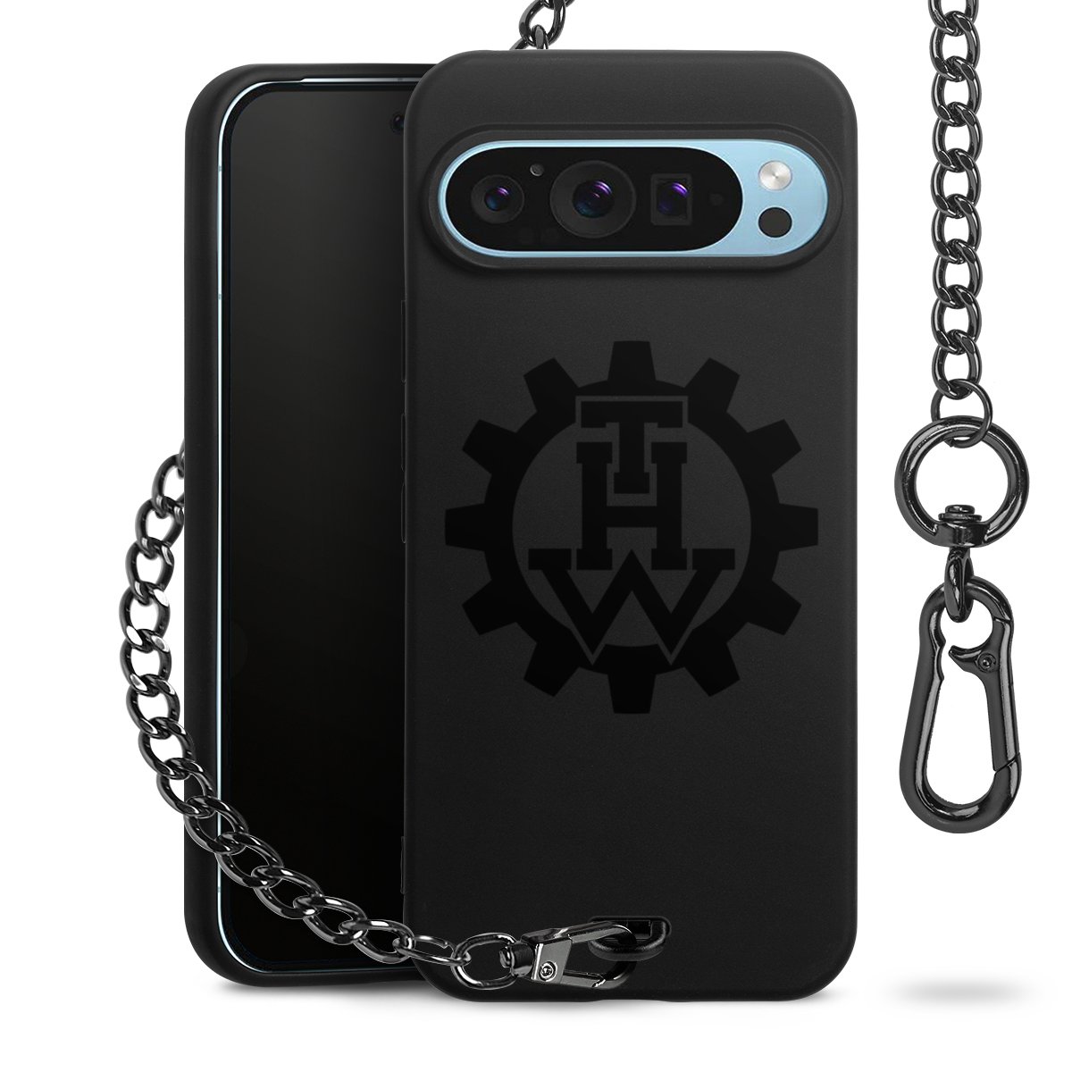 • Mattschwarze Handyhülle mit Metallkette