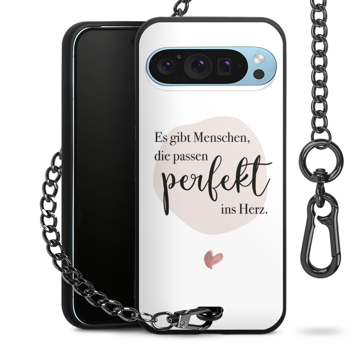 • Mattschwarze Handyhülle mit Metallkette