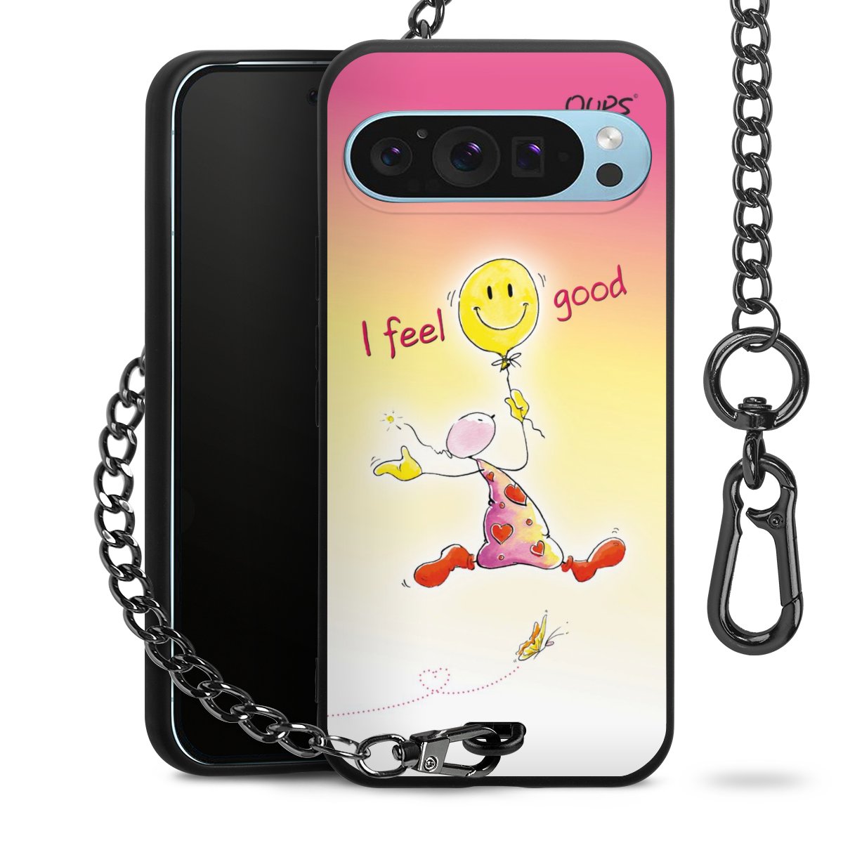 Die mattschwarze Silikon-Handyhülle besteht aus robustem TPU (thermoplastisches Polyurethan). Sie ist flexibel und schützt Dein Smartphone vor Stößen und Kratzern. Die Kette sowie der Karabinerhaken sind aus Metall in Gunmetal-Optik gefertigt. Für dieses Produkt kommen ausschließlich TÜV-geprüfte Materialien zum Einsatz.