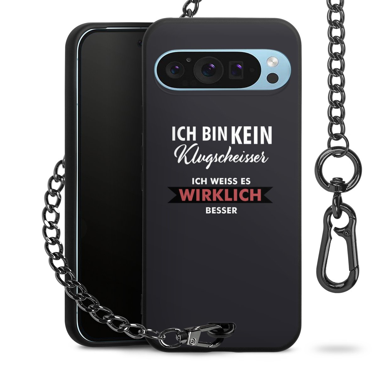 - Mattschwarze Handyhülle mit Metallkette