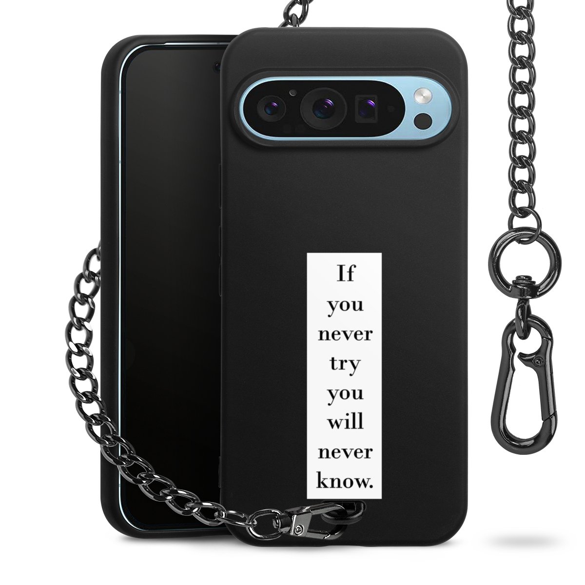 - Mattschwarze Handyhülle mit Metallkette