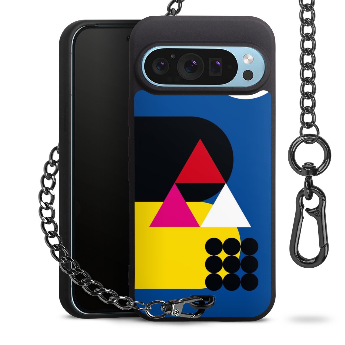 - Mattschwarze Handyhülle mit Metallkette