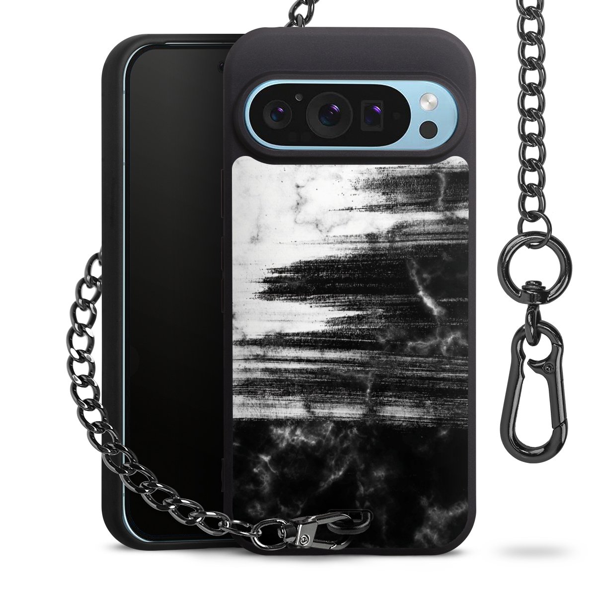 • Mattschwarze Handyhülle mit Metallkette