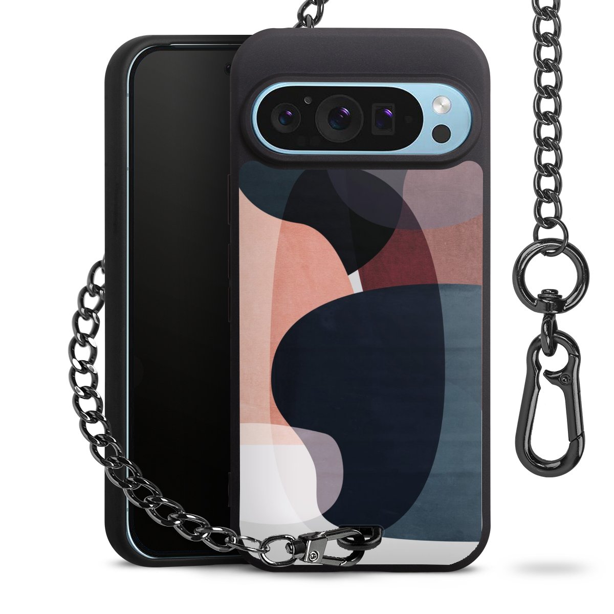 • Mattschwarze Handyhülle mit Metallkette