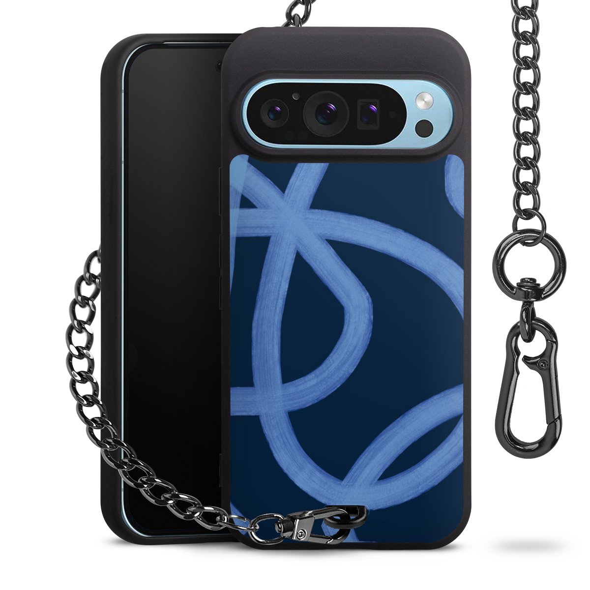 • Mattschwarze Handyhülle mit Metallkette