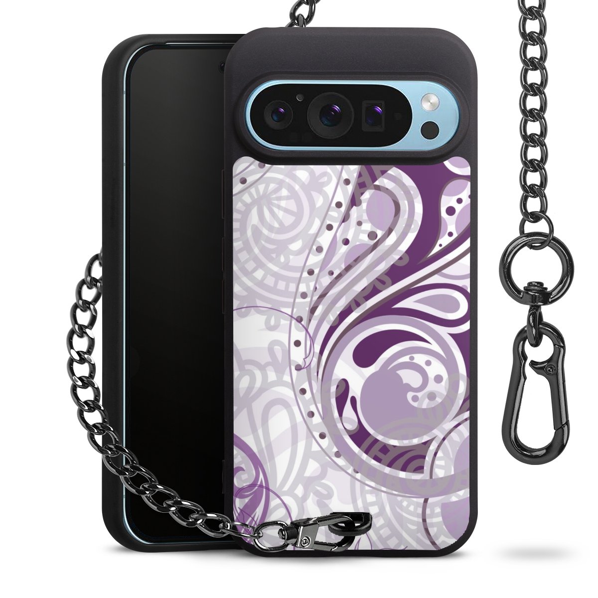 • Mattschwarze Handyhülle mit Metallkette