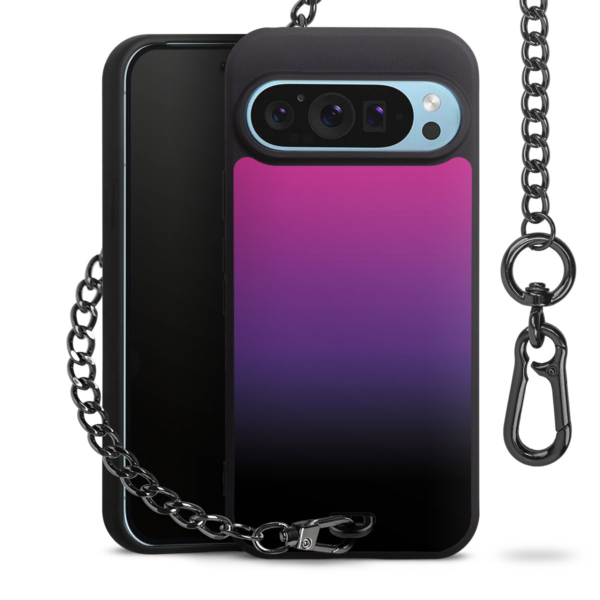 • Mattschwarze Handyhülle mit Metallkette